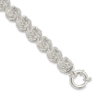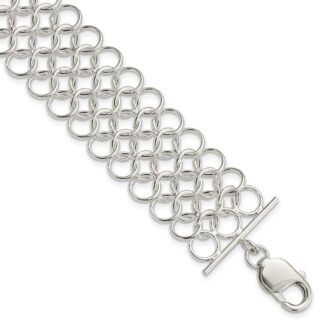 Sterling Silver Polished Circles Fancy Link Bracelet