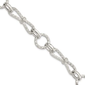 Sterling Silver Polished & Textured Fancy Oval Link 7.5in Bracelet