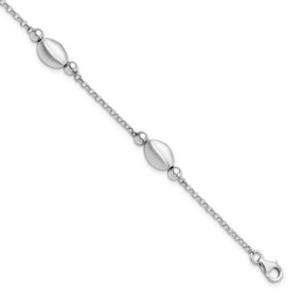 Leslie’s Sterling Silver Rhod-plated Polished/ Satin w/1in ext. Bracelet