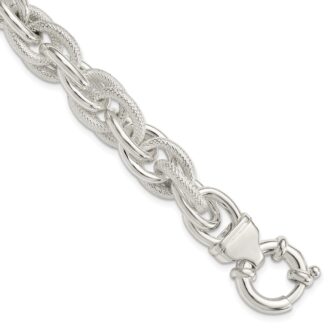 Leslie’s Sterling Silver Polished Textured Bracelet- Hidden Clasp
