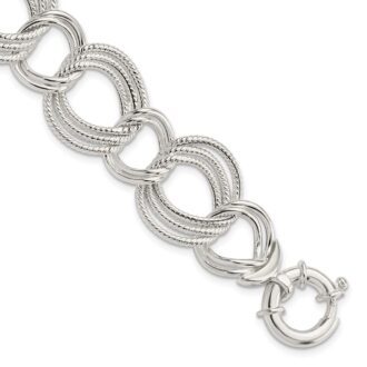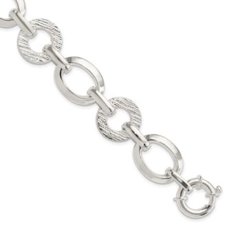 Sterling Silver Polished Ovals And Textured Circles Bracelet