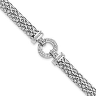 Sterling Silver Rhodium Plated CZ Mesh Link Bracelet