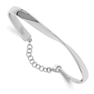 Leslie’s Sterling Silver Rhodium-plated Twisted w/1 safety chain Bangle