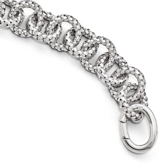 Sterling Silver Rhodium Plated Polished Textured Fancy Link Bracelet