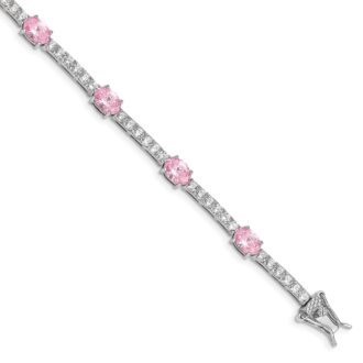 Sterling Silver Rhodium-plated 7inch Pink and Clear CZ Bracelet