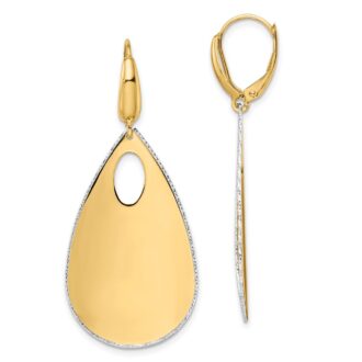 Leslie’s 14K Two-tone Polished Textured Leverback Dangle Earrings