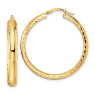 14k 3x40mm Diamond-cut Round Hoop Earrings