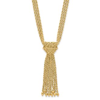 14K Polished and D/C Multi-Strand Rope w/ Drop Knot and Beads Necklace