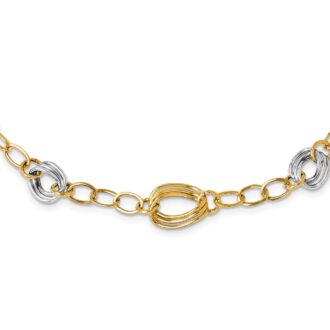 Leslie’s 14K Two-tone Polished and Textured w/2in ext. Necklace