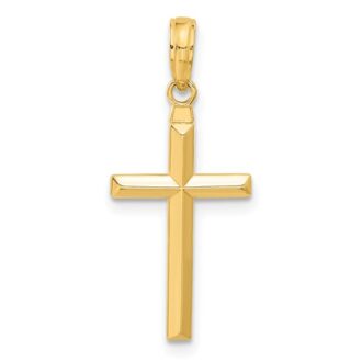 14K Diamond-cut Block Cross Charm