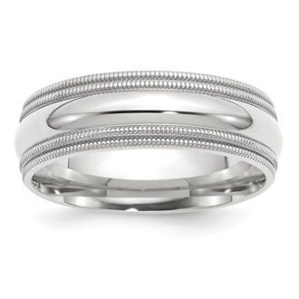 14k White Gold 7mm Double Milgrain Comfort Fit Wedding Band Size 6.5