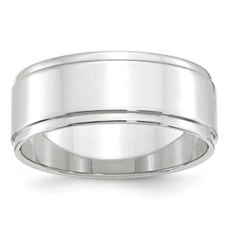 14k White Gold 8mm Flat with Step Edge Wedding Band Size 10