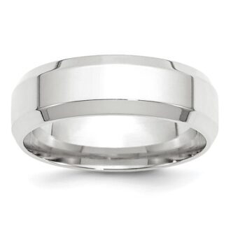14k White Gold 7mm Beveled Edge Comfort Fit Wedding Band Size 10.5