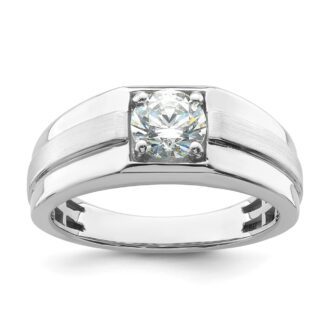 14K White Gold Lab Grown Diamond Satin & Polished Comp Men’s Ring