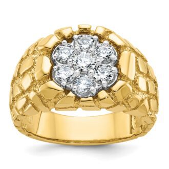 14ktt IBGoodman Men’s Polish/Satin/Ribbed LG Dia Round Cluster Ring