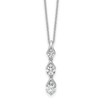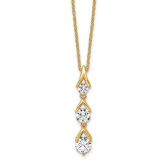 14KW True Origin Lab Grown Diamond VS/SI DEF 3 Stone Pendant with Cha