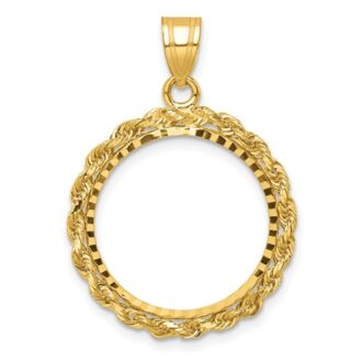 Wideband Distinguished Coin Jewelry 14k Polished Rope 32.0mm x 2.85mm Screw Top Coin Bezel Pendant