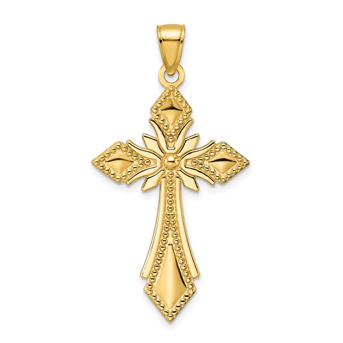 Material: Primary – Purity:14K|Finish:Polished|Length of Item:45 mm|Charm/Element Length:37.5 mm|Charm/Element Thickness:1.5 mm|Charm/Element Width:22.5 mm|Feature:Polished Back|Material: Primary:Gold|Width of Item:22.5 mm|Product Type:Jewelry|Jewelry Type:Pendants & Charms|Sold By Unit:Each|Pendant/Charm Type:Themed|Texture:Beaded|Profile Type:Closed Back|Bail Width:4 mm|Material: Primary – Color:Yellow|Bail Length:7.5 mm