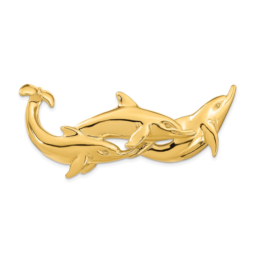 14K Polished (Fits Up To 8mm) Triple Dolphins Slide