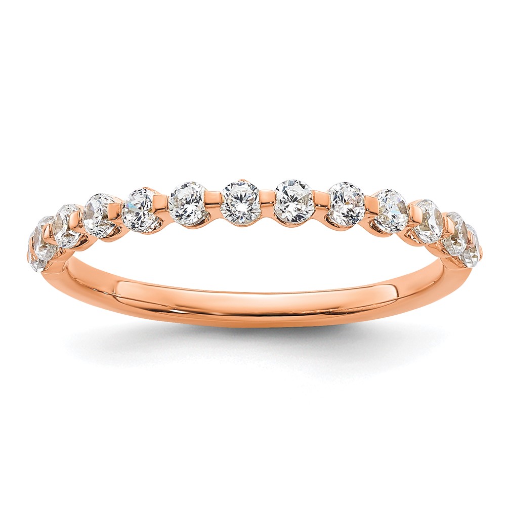 Material: Primary – Purity:14K|Finish:Polished|Band Width:1.64 to 2.4|Size (Minimum):7|Size (Maximum):7|Sizing Adjustment Increment:0.25|Band Width U/M:mm (range)|Feature:Solid|Material: Primary:Gold|Completeness:Complete (all stones included)|Sizeable:Yes|Width of Item:1.64 to 2.4|Width of Item U/M:mm (range)|Engravable:Not Recommended|Packaging:Gift Boxed|Product Type:Jewelry|Jewelry Type:Rings|Sold By Unit:Each|Gender:Women’s|Material: Primary – Color:Rose|Ring Type:Diamond|Stone Type:Diamond, Lab Grown|Stone Quantity:13|Stone Weight:0.0347|Stone Clarity:VS/SI|Stone Shape:Round|Stone Size:2|Stone Size U/M:mm|Stone Weight U/M:ct|Stone Color Grade:D-E-F