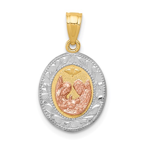 14K W/White and Rose Rhodium Baptism Pendant