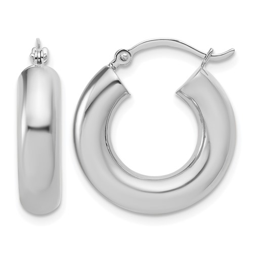 14k White Gold Polished 5mm x 20mm Lightweight Hoop Earrings