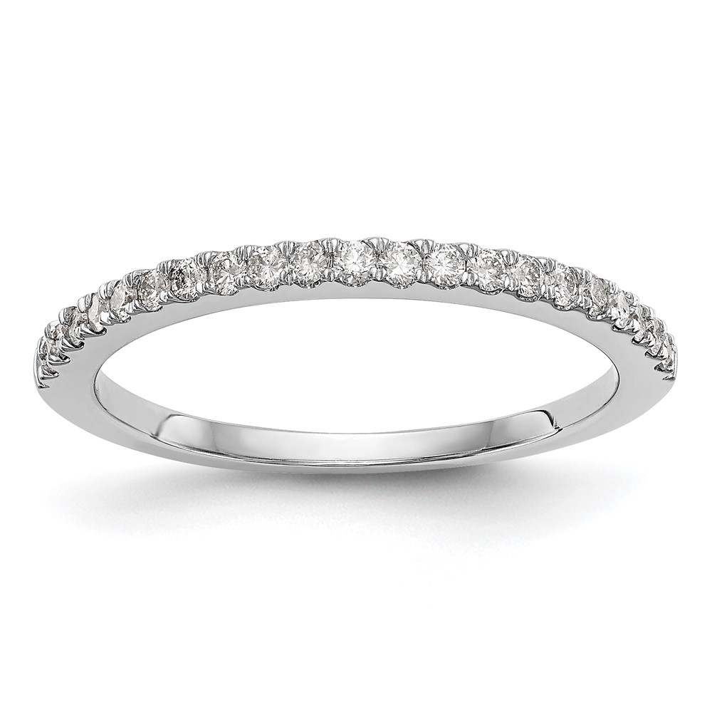 Material: Primary – Purity:14K|Finish:Polished|Plating:Rhodium|Band Width:1.8|Size (Minimum):6|Size (Maximum):8|Sizing Adjustment Increment:0.25|Band Width U/M:mm|Feature:Solid|Manufacturing Process:Casted|Material: Primary:Gold|Completeness:Complete (all stones included)|Sizeable:Yes|Thickness:< 1.5|Thickness U/M:mm|Engravable:Not Recommended|Packaging:Gift Boxed|Product Type:Jewelry|Jewelry Type:Rings|Sold By Unit:Each|Gender:Women’s|Material: Primary – Color:White|Ring Type:Wedding Bands|Feature 2:Closed Back|Plating Color:Silver Tone|Stone Type:Diamond, Lab Grown|Stone Quantity:21|Stone Weight:0.008|Stone Clarity:VS/SI|Stone Shape:Round|Stone Size:1.2|Stone Size U/M:mm|Stone Weight U/M:ct|Stone Creation Method:Lab Grown|Stone Color Grade:D-E-F