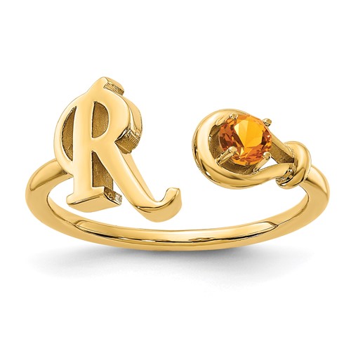 Material: Primary – Purity:14K|Band Width:1.57 mm|Manufacturing Process:Casted|Material: Primary:Gold|Completeness:Complete (all stones included)|Product Type:Jewelry|Jewelry Type:Rings|Sold By Unit:Each|Material: Primary – Color:Yellow|Ring Type:Personalized|Letter:R