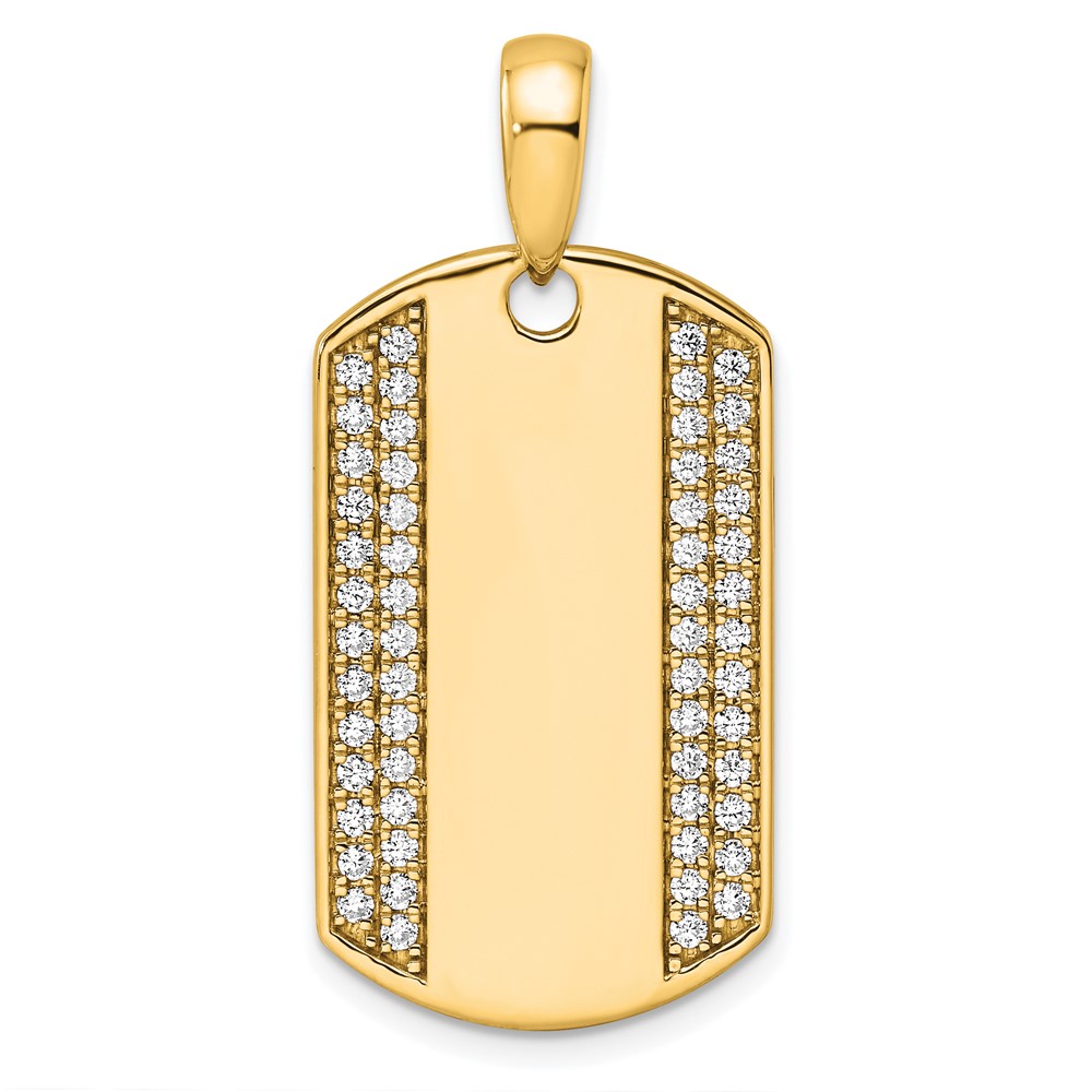 Pendants & CharmsMaterial: Primary – Purity:14K|Finish:Polished|Length of Item:28|Charm/Element Length:28|Charm/Element Length U/M:mm|Charm/Element Width:17|Charm/Element Width U/M:mm|Length of Item U/M:mm|Material: Primary:Gold|Completeness:Complete (all stones included)|Width of Item:17|Width of Item U/M:mm|Product Type:Jewelry|Jewelry Type:Pendants & Charms|Sold By Unit:Each|Pendant/Charm Type:Diamond|Gender:Men’s|Bail Width:4|Material: Primary – Color:Yellow|Bail Length:9|Bail Length U/M:mm|Bail Width U/M:mm|Stone Type:Diamond, Lab Grown|Stone Quantity:26|Stone Weight:0.015|Stone Clarity:VS/SI|Stone Shape:Round|Stone Size:1.5|Stone Size U/M:mm|Stone Weight U/M:ct|Stone Creation Method:Lab Grown|Stone Color Grade:D-E-F|Stone Type:Diamond, Lab Grown|Stone Quantity:30|Stone Weight:0.012|Stone Shape:Round|Stone Size:1.4|Stone Size U/M:mm|Stone Weight U/M:ct