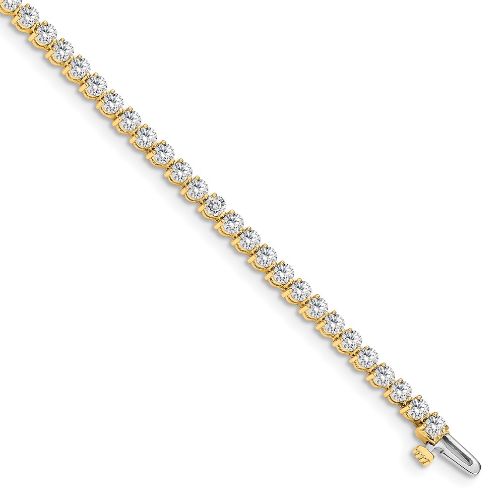 Material: Primary – Purity:14K|Finish:Polished|Length of Item:7|Chain Length:7|Chain Length U/M:in|Clasp /Connector:Box Catch|Feature:Solid|Length of Item U/M:in|Material: Primary:Gold|Completeness:Complete (all stones included)|Width of Item:2.5|Width of Item U/M:mm|Engravable:Not Recommended|Packaging:Gift Boxed|Product Type:Jewelry|Jewelry Type:Bracelets|Sold By Unit:Each|Bracelet Type:Tennis|Gender:Women’s|Material: Primary – Color:Yellow|Stone Type:Diamond, Lab Grown|Stone Quantity:59|Stone Weight:0.041|Stone Clarity:VS/SI|Stone Shape:Round|Stone Size:2.2|Stone Size U/M:mm|Stone Creation Method:Lab Created|Stone Color Grade:D-E-F