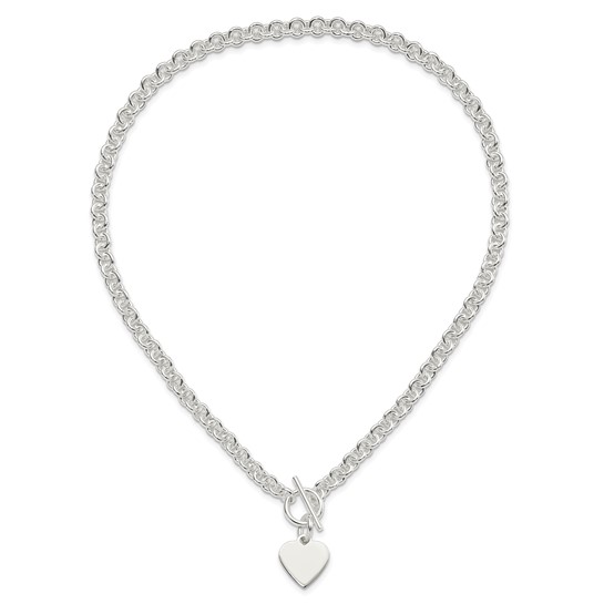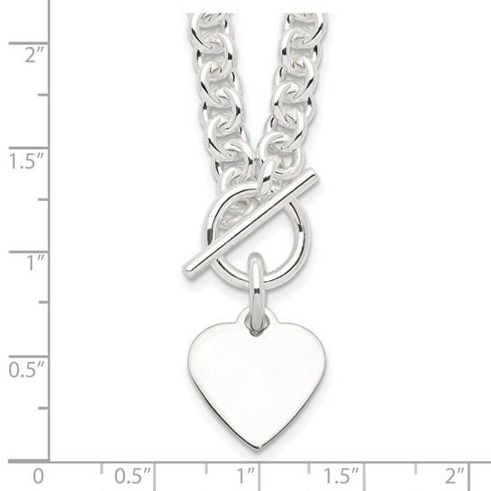 Sterling Silver Heart Disc on Fancy Link Toggle Necklace