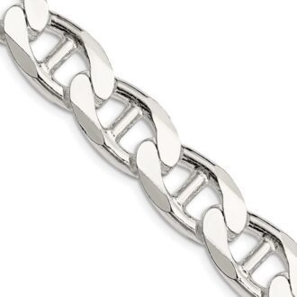 14K White Gold 9 inch 8.5mm Flat Beveled Curb with Lobster Clasp Chain