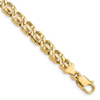 14K 9 inch 6.75mm Hand Polished Fancy Link with Lobster Clasp Bracelet