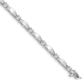 14k White Gold Complete 1.13 carat Round AAA Diamond Curved Bar Link 7 inch Tennis Bracelet