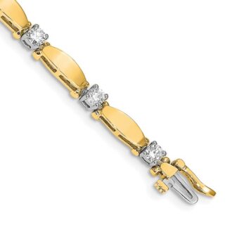 14k Two-tone Complete 1.87 carat Round AA Diamond Curved Bar Link 7 inch Tennis Bracelet