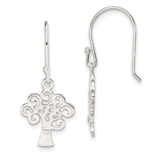 Sterling Silver Polished Tree Shepherd Hook Earrings