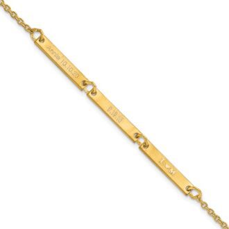 14k Polished and Satin Rose-plated X-and-Heart 10 inch Anklet