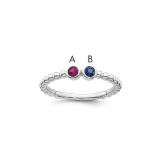 14k White Gold 2 Synthetic Birthstone Mother’s Ring