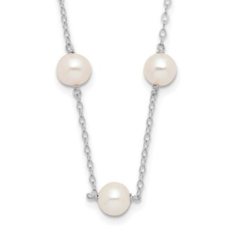 14K White Gold 5.5-6.5mm White Near Round Freshwater Cultured Pearl 12-station 16 inch Necklace