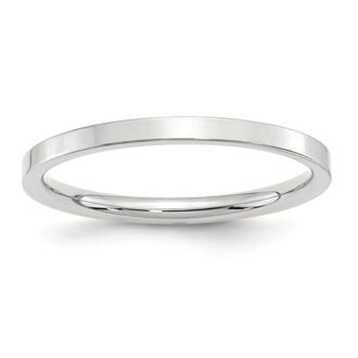 14k White Gold 2mm Standard Weight Flat Comfort Fit Wedding Band Size 14