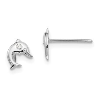 14k White Gold Madi K CZ Dolphin Post Earrings