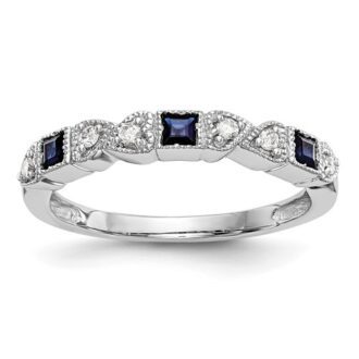 14k White Gold Heart Design 1/10 carat Diamond and Blue Sapphire Complete Band