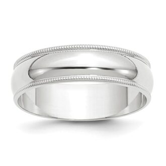 14k White Gold 6mm Lightweight Milgrain Half Round Wedding Band Size 9.5