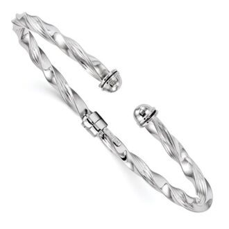 14K White Gold Polished Textured Hinge Cuff Bangle
