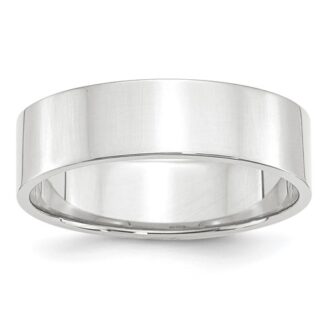 14k White Gold 6mm Lightweight Flat Wedding Band Size 10.5