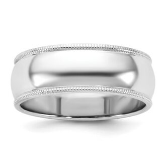 14k White Gold 6mm Lightweight Comfort Fit Brushed Satin/Polished Milgrain Grooved Edge Wedding Band Size 13