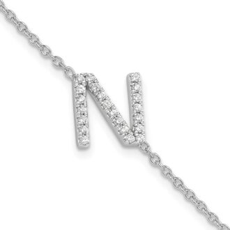 14KW Diamond Sideways Letter N w/ 1in ext. Bracelet