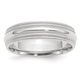 14k White Gold 6mm Double Milgrain Comfort Fit Wedding Band Size 7