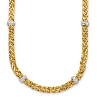14K & White Rhodium Polished D/C Flat Wheat Necklace